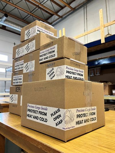 Orders are shipped on Mondays except by special arrangement (live adult butterflies for special events, or warranty replacements).